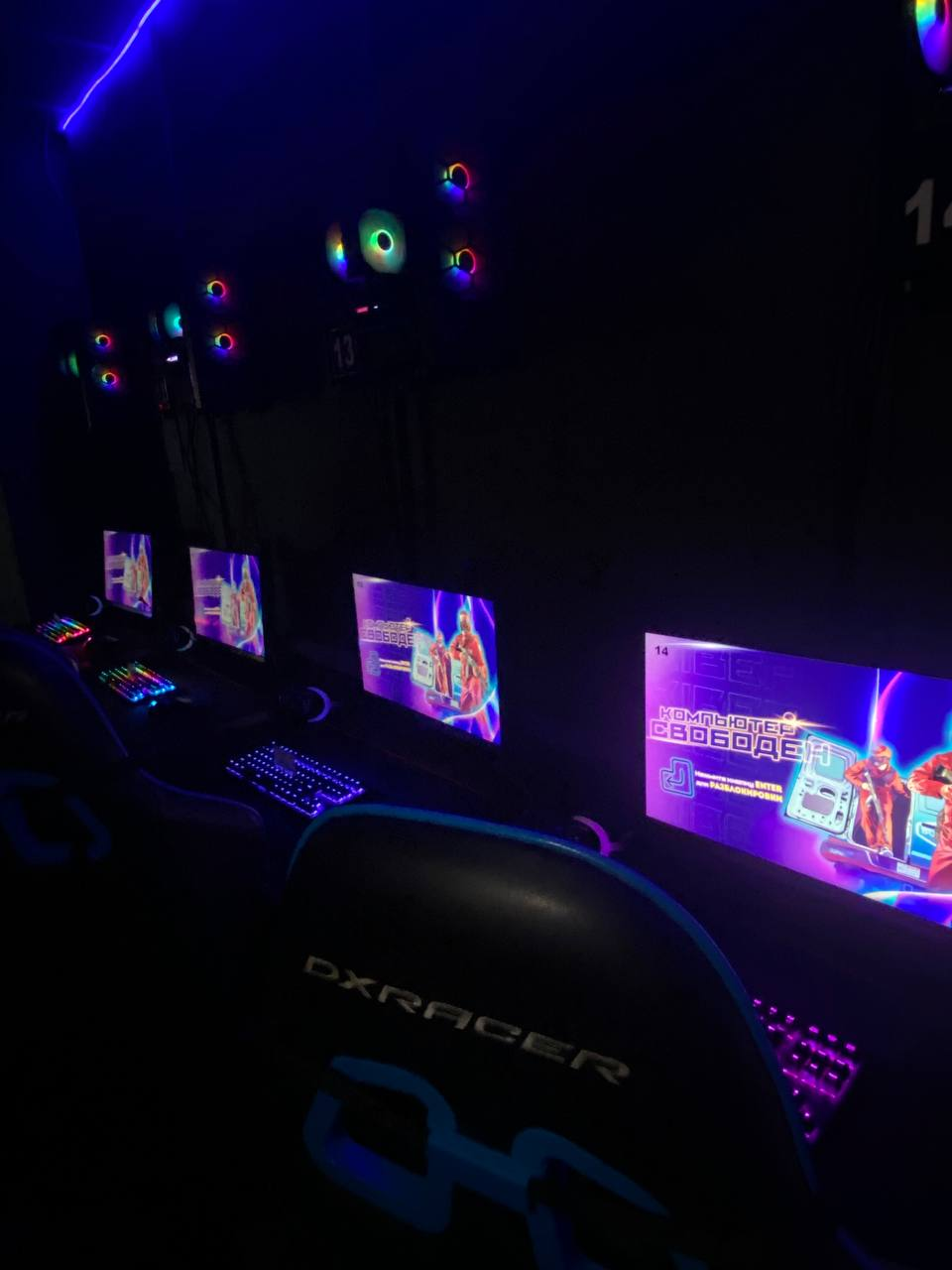 Компьютерный клуб kiberroom_orsha – клуб с 20 мощными ПК, с 1 автосимулятором, с 1 комплектом VR очков. Кресла DXRacer OH/G2300/NR и OH/P88/NR.